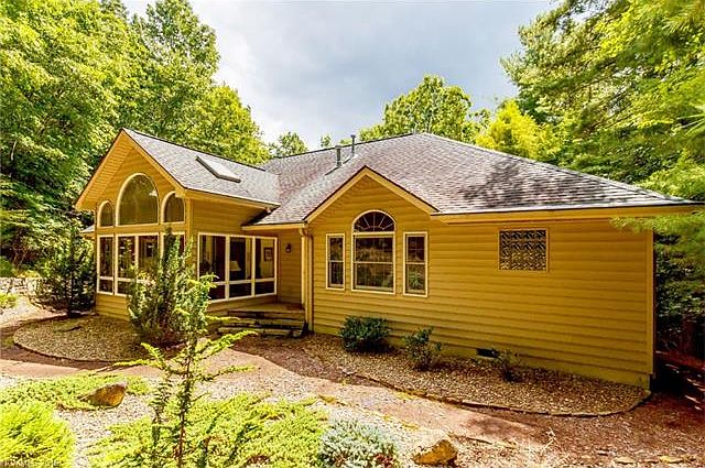 Privately nestled on wooded lot between 2nd & 3rd fairways sits one of Connestee Falls finest custom homes. The features of this light & bright 3BR + office + Carolina sun room / 2.5 BA home include: complete 2020 kitchen remodel w/granite counters & wine bar, hw floors, crown molding & tray ceiling in DR, gas FP, MBR suite w/dual vanities, custom walk-in closet, new flagstone rear patio. Lg. basement includes workshop & lots of storage. Close to East Fork gate, Lake Atagahi & Clubhouse. CF UAF $8,000