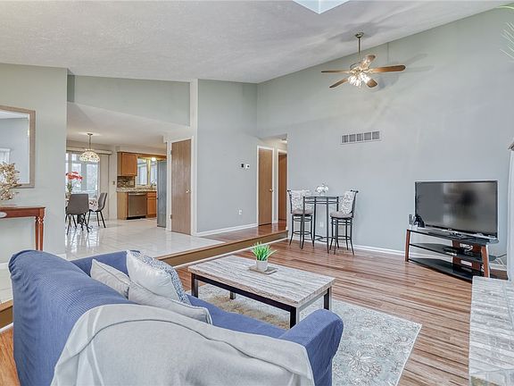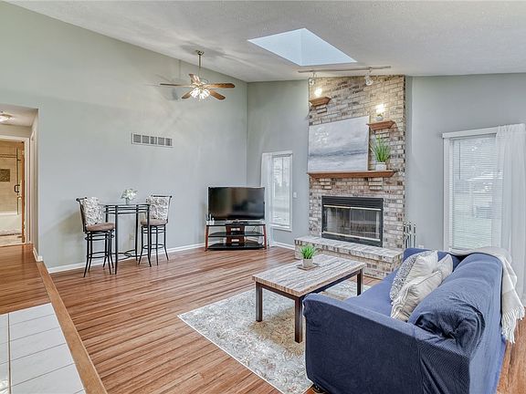 - Wet Bar, Eat-in Kitchen, Kitchen/Family Room Combo, Living/Dining Room, Quartz Counters, Sliding Glass Door(s), Skylights, Bar, Bedroom on Main Level, Main Level Primary