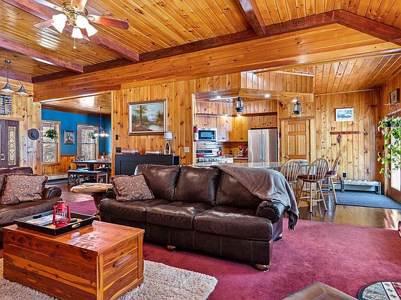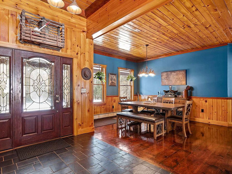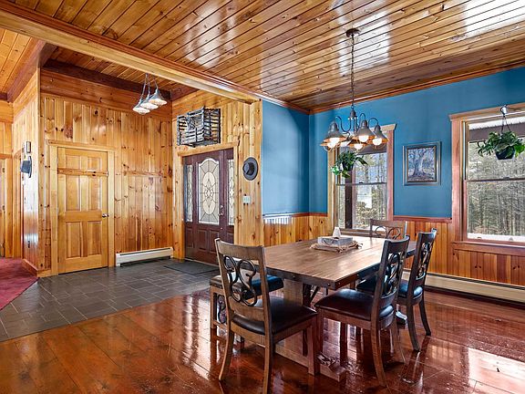 This 2001 Ranch Home has the features often requested but not found on the market. A granite step brings you onto the farmer's porch and entry into a slate floor foyer. All wood ceilings brings warmth and Adirondack charm to this single floor living, contemporary home. Kitchen cabinets of knotty pine are beautifully done with wood to the ceiling, silestone countertops, stainless steel appliances and a wood floor. The kitchen is open to the fieldstone fireplaced livingroom and flows to a dining room with wood wainscotting. A 12' x 29' deck opens this home to the great outdoors. The floor plan has two bedrooms and a bath on its own side of the home with the Master ensuite on the opposite "wing". The master bedroom is graced with a gorgeous wood, tray ceiling. Wood doors throughout. A first floor laundry room is tucked away and also has a wood ceiling. Direct entry from the high ceiling 2 car garage. More to be seen as the lower level is mostly finished presently as an office and conference area, 1/2 bath. Plenty of unfinished room for storage and a workshop. Utility amenities include a 1000 gallon buried propane gas tank, super storer water tank, fire alarm system, 4 zones and underground utilities, full perimeter drainage. A level, grass yard trimmed with trees all on a 3.01 acres. Johnson Road a rural setting yet close to all the Lakes Region has to offer in services and amenities. 4 m. to Exit 20 I93 shops, restaurants. 1 hr 20 mins to Boston. 1 hr 15 mins to Portsmouth