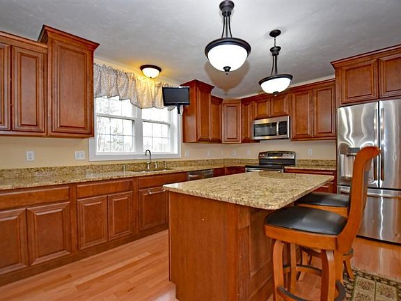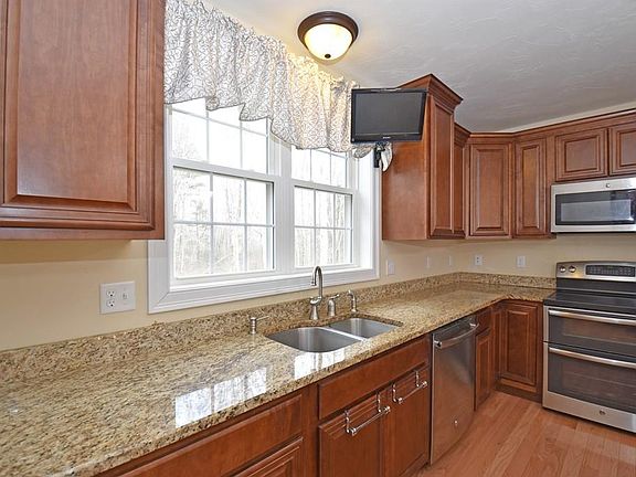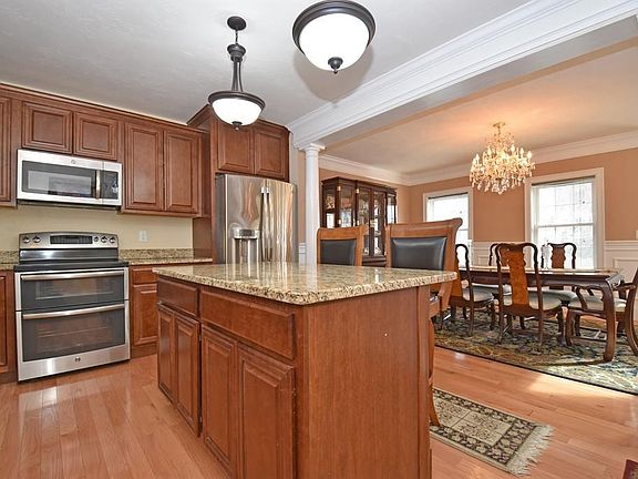 Beautiful and young 3 bed, 2.5 bath colonial in desirable Leominster neighborhood! Step inside the double entry doors and to your right is the formal dining room with gleaming hardwood floors, crown molding and wainscoting opening up to kitchen with hardwood, granite counter tops, breakfast bar, s/s appliances and pantry. Convenient 1st floor laundry in the half bath with granite counter top. Bright and sunny open concept living room with hardwood, crown molding and slider to the back deck. Upstairs your master suite awaits! Large bedroom with plush wall to wall carpet, vaulted ceiling, tons of natural light, walk in closet AND a bathroom with dual vanity granite counter tops and a linen closet. Two additional generous sized bedrooms with wall to wall carpet and ample closet space. Two car garage with epoxy flooring, central AC and more all perfectly situated on a cul-de-sac close to public transportation, trails, highway access and more.