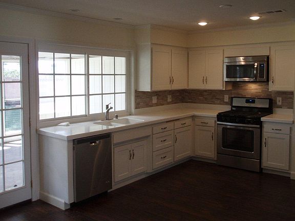 Nice ranch home with private yard with some mountain views. Features; 3 car tandem garage with pass through door for trailer at backyard & roll up door, enclosed patio, large kitchen with corian counters /eating area with French doors and fireplace, laminate floors at entry and kitchen, smooth ceilings at family room, kitchen and hallway, master bath features jetted tub.