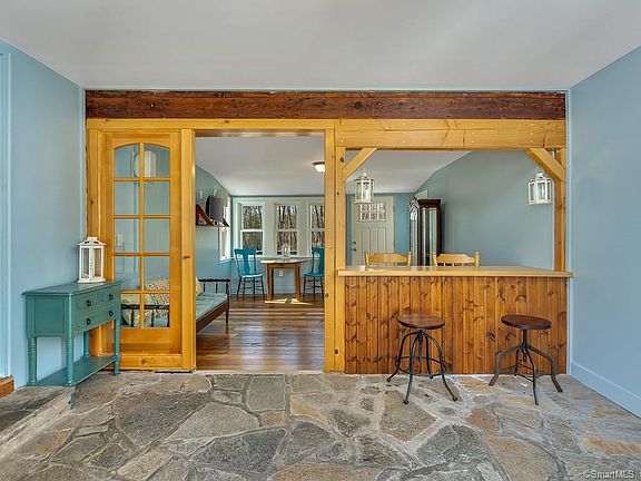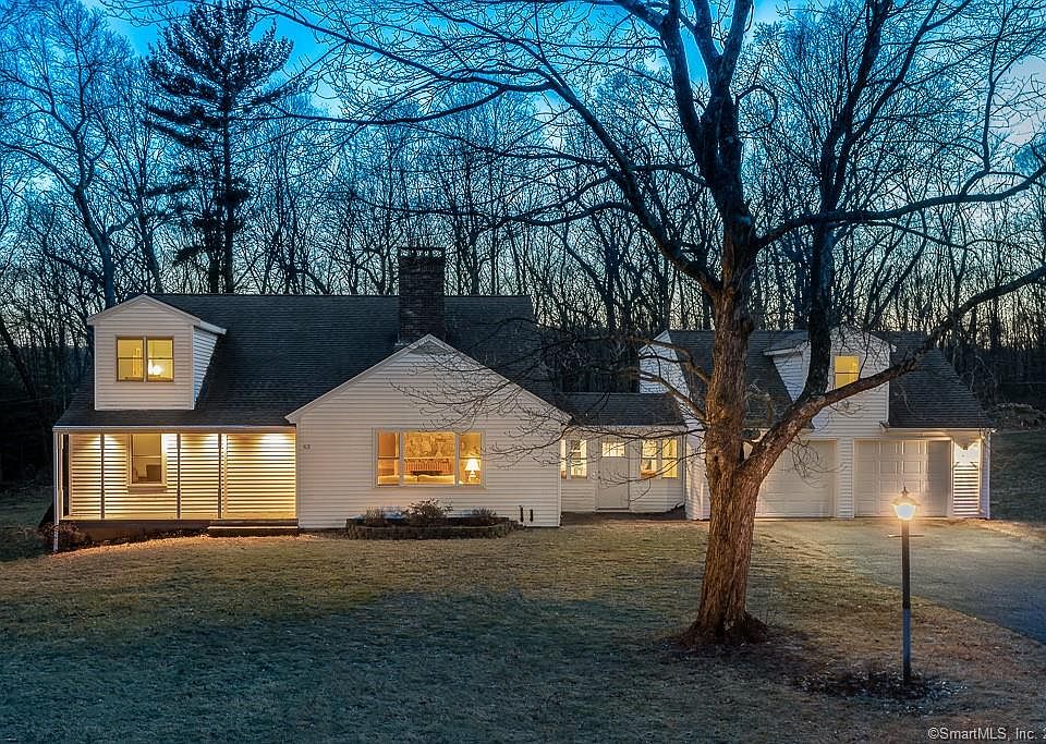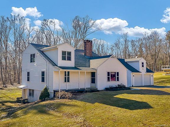 Welcome home to this well-maintained custom built 3-bedroom, 2.5 bath, 2,040 sqft. center chimney cape situated on 2 acres of level land. Enjoy the eat-in kitchen with maple cabinets, double ovens, gas cooktop, and tile backsplash that features a beautiful brick accent wall. The family room is a great spot to warm up in front of the gas log fireplace and read a book on those cool nights. You're going to love the finished breezeway space that includes a bar and TV sitting area, great for entertaining A first-floor bedroom and tile full bath is a plus for those who seek one floor living. A first-floor office with built-in shelves completes the main level. The 2nd floor features two additional spacious bedrooms with an updated full bath. This cozy and comfortable property has plenty of space to spread out and relax including an area in the lower level for a playroom/gym/craft room and features a brick fireplace and a half bath. The 26x26 2-car garage includes a full staircase that leads to the unfinished 2nd floor of the garage and is just waiting for your imagination to turn it into another bedroom, playroom or man-cave. The deck, expansive backyard and fire-pit area is ideal for large outdoor gatherings. Additional features include: central AC, a generator hookup, newer plumbing, newer windows, a walkout basement, new bathroom fixtures and newer entry doors. Convenient to shopping, restaurants and I-84. A home not to be missed