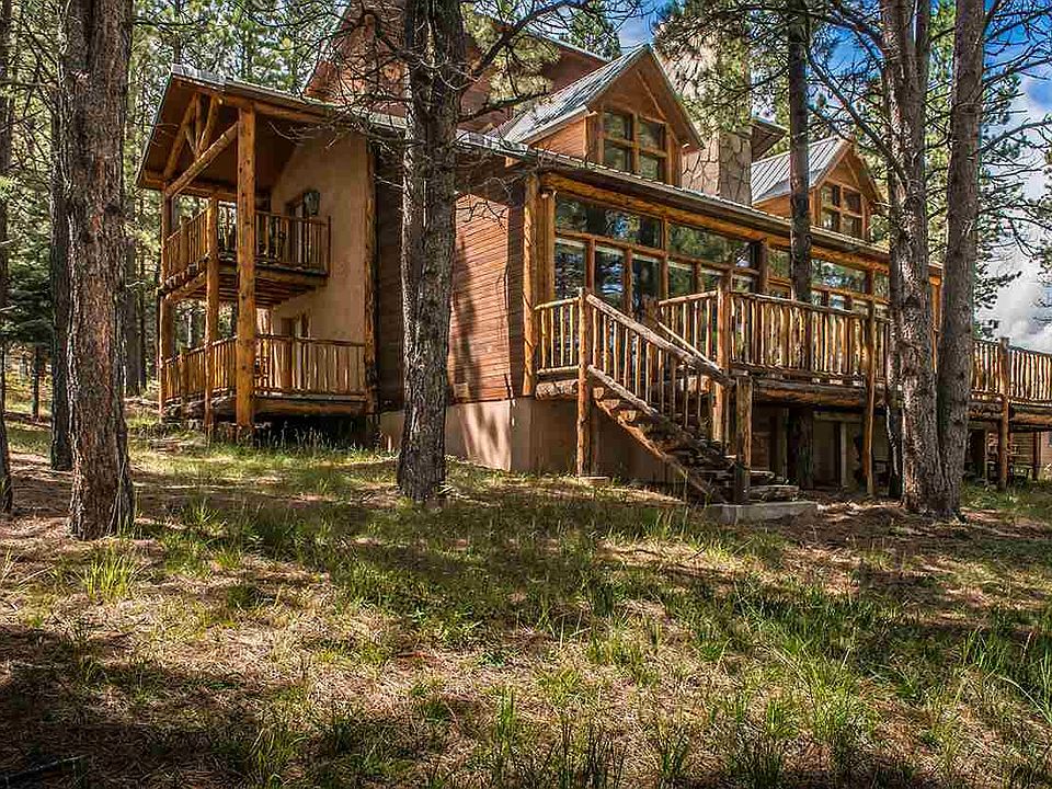 Truly one of the show place homes in Angel Fire. True lake front lot, custom made furniture and decorated with furnishings from the Dallas Furniture Mart , custom made log stairway, granite counter tops, double sided stone fireplace, custom made chandeliers, fully furnished and ready for move in. New electrical, heat, plumbing and advanced septic system in 2008. 2 living areas, formal dining room, high end fixtures, irrigation system, antique refinished flooring and much much more. A real must see for the discriminating buyer. Three decks, all with lake views!