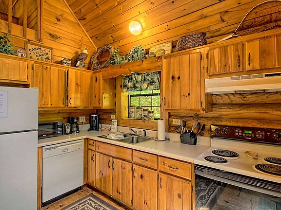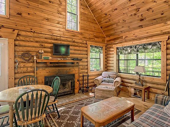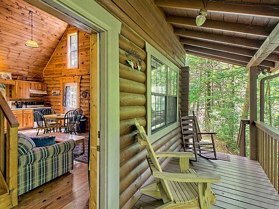 REAL LOG CONSTRUCTION! This is a solidly built sweet 2BR 2BA cabin surrounded by nearby US National Forest that is steps away! Perfect getaway cabin, all wood, REAL woodburning fireplace & jetted tub. Open greatroom concept and comes furnished, this is a unique location near Helton Creek Falls. You can hear the sounds of the creek from the cabin and this is what you come to the Mountains for! Super private peaceful setting in one of the most beautiful areas of Union Co. Has Rental History if someone wanted to keep it on the Vacation Rental program. Brand New Refrigerator