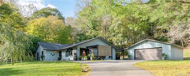 Beautifully renovated 1-level home with 2-car garage! 5 bedrooms/2.5 baths (3-BR septic permit). See elk in your yard! ALL NEW: roof, exterior paint, HVAC (heat pump and propane furnace), concrete patio, porch ceiling, lighting, porcelain tile wood-look flooring, carpet, kitchen cabinets, stainless appliances (Kitchen Aid 5-burner gas cooktop, dishwasher, exhaust hood, convection wall oven, built-in microwave, trash compactor, Frigidaire refrigerator), quartz countertops, half bath, tankless water heater, 3 walk-in closets. Huge master suite w/door to courtyard & hot tub patio. Skylights flood open plan great room with light. Dining area with slider to dining patio with pergola. 1 bonus bedroom used as a craft room has a wood-burning stove. Another bonus bedroom used as an office. Flat, paved access. Great yard. Fantastic year-round home or superior vacation rental. Only 1 street from Fie Top Rd to Cataloochee Ski Resort! Furniture available for purchase.