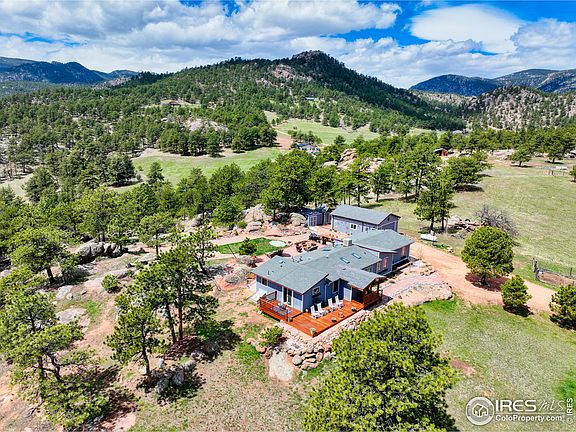 Completely renovated between 2014-2023, this "like" new home is AWESOME. Nestled on over 15 acres, this magical property offers STUNNING views of the mountains, foothills, and city lights. Craftsmanship and attention to detail shine through the over 2,000 SF of main-level living featuring a wonderfully functional floor plan, bright and open "chef's" kitchen with adjacent living and dining areas; split bedroom suites, a large office/FLEX room, and two separate gathering spaces. Add to this multiple outdoor living and entertaining options, an outdoor kitchen surrounded by beautiful rock outcrops, and a fabulous 768 SF detached garage/workshop/ studio space; we're confident you'll agree this place is just about perfect. Imagine being able to have your very own park with garden areas, fruit trees, open meadows, forests and rocks; pastures for animals, and tons of places to hike, bike, or camp without ever leaving home. Nearby access to National Forest with seasonal streams and trails offers even more outdoor opportunities. Conveniently located just 6 miles from downtown Lyons where you'll enjoy fabulous parks, trails, and rivers, a plethora of music and art, great restaurants, highly rated schools, and unique shops. Need to commute? Boulder and Longmont are under 30 minutes and reach DIA in about an hour. Ask for our Features List so you can see all the fabulous attributes this amazing property has to offer.