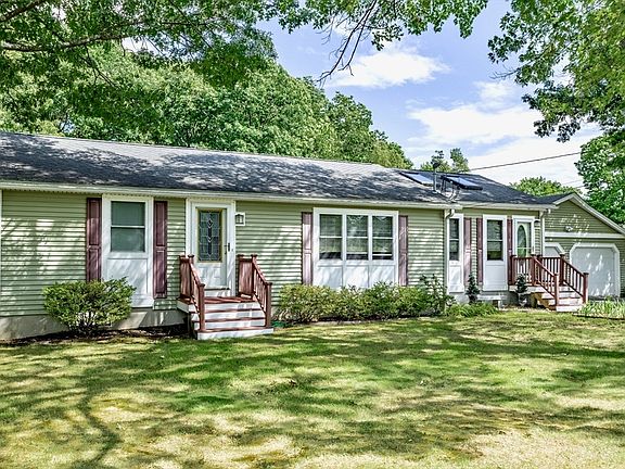 RARE opportunity to own this custom expanded Ranch tucked away in a private corner at the end of a dead-end street in North Leominster. With over 3500 sq-ft of living area between both levels, the possibilities are endless! Soaring cathedral ceilings w/ skylights frame the open concept kitchen/dining/living area which is central to this bright and spacious home. The kitchen features SS appliances including double wall oven & 5-burner gas cooktop. The spacious primary suite features en-suite bath and 8x9 walk-in-closet, with 2 add’l bedrooms and full bath on the main level. The fully finished lower level features endless opportunities for entertaining family and friends, with large family/recreation room, home office, bonus room, multiple storage/utility areas, & large game room w/ slider to the stone patio. The fun continues outside in the fully fenced backyard, with 18x33 above-ground pool, attached pool deck and cabana with built-in bar.
