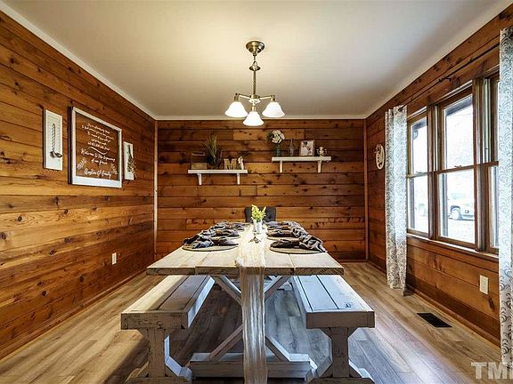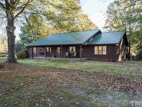 Pics say a 1000 words! FABULOUS FARMHOUSE ON 4 ACRES IN PRIME LOCATION! Pull up through the tree lined drive to this custom crafted LOG CABIN w/Metal roof. This ranch plan has formal living & dining rooms + family room w/wood burning stove open to the breakfast bar & kitchen with stainless appliances, gas stove, subway tile & farmhouse porcelain sink & handcrafted island, new flooring,updated baths, LG wired workshop, log cabin shed + cleared acreage for Llamas, Horses, RV & Boat. Walk to Jordan Lake!