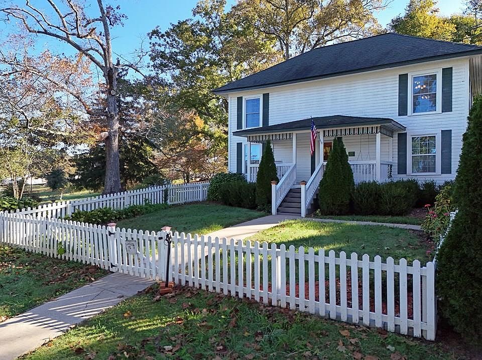 Rare opportunity to own a piece of North Georgia history! Built in 1904 as the dorm for North GA Baptist College, “Guthrie Hall” was later converted to a private residence and is one of the only remaining original homes in Morganton. Current owners have retained original character/curb appeal of property while updating systems and adding modern amenities. Paved round driveway with carport leads you through the back door into a beautiful kitchen/breakfast room. Kitchen has granite countertops, tile floors, gas range with 2 ovens, stainless refrigerator and tray ceiling. Double sink has reverse osmosis water filtration. Breakfast nook has custom built-in shelving with lighting. A massive walk-in pantry is a showstopper, with floor-to-ceiling adjustable shelving Adjoining laundry room has full size washer/dryer, storage and leads to private half bath. Main living/dining area has large windows, gas fireplace and hardwood floors that extend to foyer and primary suite. First floor primary bedroom has generous closet space and en suite bathroom with heated tile floors, double sinks, and tiled shower. Original banister takes you to second floor with three more bedrooms and full bath. Original hardwood floors in the oversized landing/sitting area and in the largest bedroom, while the other 2 bedrooms have carpeting. Full bathroom has double vanities, tub/shower combo, 2 linen closets and tile floors. Rocking-chair front porch faces gated yard with white picket fence. Picture-perfect barn has paved driveway, loft, electricity and would make an ideal shop or apartment. The 1+ acre lot has mature trees and is within walking distance to downtown Morganton, with easy access to downtown Blue Ridge and the interstate. Other details include updated windows/exterior doors and new HVAC on second floor. If you want the charm of a historic home with modern conveniences and a prime North Georgia location, you won't find it anywhere else.