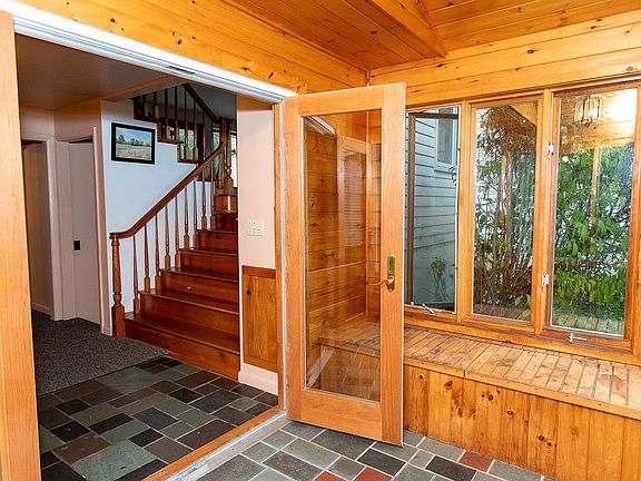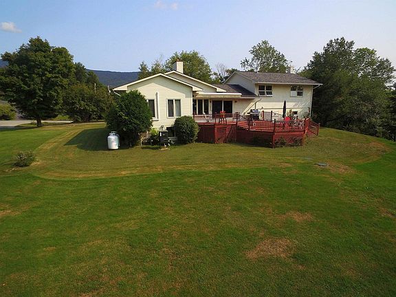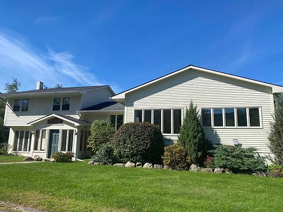 This lovely property is located in Waterbury Center and just minutes away from all kinds of winter and summer recreation...Waterbury Reservoir, Country Club of Vermont, hiking trails, and Stowe Mountain Resort. The home is surrounded with spectacular deciduous trees and striking winter mountain views. The home features hardwood floors, four bedrooms with a primary bedroom ensuite with windows all around and access to the large deck. The living area has a wood burning fireplace and sliding doors to the spacious deck - ideal for summer entertaining. The many windows in the home allow wonderful light from the westerly and southern exposure. A new roof was installed on the main house in 2015 and south end in 2017. New 1000 gallon septic system installed in 2013. AC/heat pump wall units in the primary BR and den provide season-round comfort. Generator conveys. Video available upon request.
