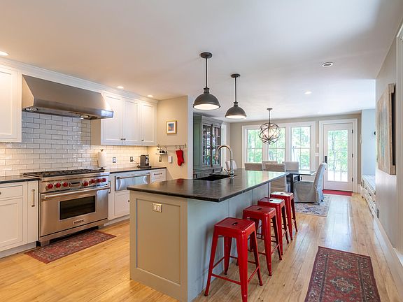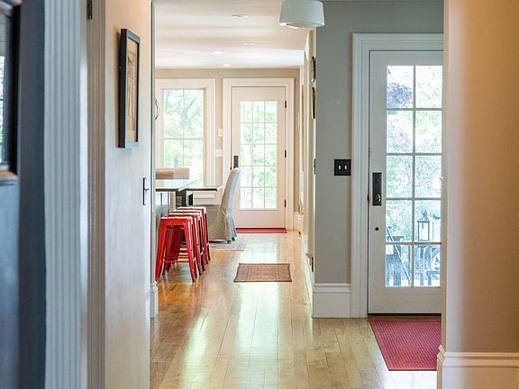 Built in 1849, the Bethiah Staples house blends the best of the mid-19th century architecture with the modern luxuries and lifestyle of the 21st century. Located in the Yarmouth Village area, the home is walkable to shops,restaurants, schools, the library, and a marina just down the hill. With its calming symmetrical facade, the home represents the aesthetic of its time with its grand central hallway flanked by formal rooms with gracious fireplaces.The oversized windows allow the light to pour in the rooms year round.On the right you will find a cozy, formal living room with crisp white molding framing the room and a hint of the Italianate style on the mantel framing the brick heath and modern wood-burning insert. Bookcases round out the space, making this a quieter room with a music room, or home office. On the opposite side of the hall is another living space, currently utilized as a media room with a more restrained molding surrounding another cozy wood stove.Behind this is yet another office area. Coming back into the hallway, there is a back entry area with a deep close. Seamlessly blending into the original elegant spaces is a modern, open kitchen designed to delight visually and functionally.From the soapstone countertops to the high end appliances and thoughtful storage, this open kitchen, dining, entertaining area also capitalizes on the views of the woods out back and the clever terrace with its granite ''fencing'' and multiple seating areas. Upstairs is an oversized primary suite with a bedroom and reading area, walk-in closet and modern spa style bathroom.From there you pass a roomy laundry room, followed by a full bathroom, two more bedrooms and an ensuite second primary bedroom. A back staircase provides a quick route down to the kitchen, another staircase leads to the finished third floor, currently utilized as a creative art area. Improvements in the basement include a home gym space, a workshop with direct exterior access and a large dry basement.