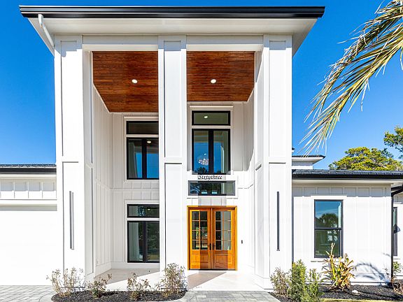 3400 SQUARE FOOT MODERN BEACH HOUSE ONE BLOCK OFF ICONIC 30A IN SANTA ROSA BEACH!! JUST A FEW MINUTES WALK TO THE BEACH!! MANY SHOPS AND RESTAURANTS LESS THAN 1/2 MILE WALK FROM YOUR NEW HOME! As you walk into this grand new home through the richness of the 8ft Mahogany double entry doors, your eyes are immediately drawn to the backyard and 3 level saltwater heated pool. The pool includes a spa level, sunbathing deck and finally the swimming level. It begs you to float your day away. The back yard is truly an oasis, boasting a fabulous entertaining area with a screened in lanai and a separate cabana offering a bathroom and outdoor kitchen with granite counters, natural gas grill, fridge, ice maker, TV hookup, and an outdoor shower to get the sand off when coming from the beach. This home is equipped with everything you need to entertain and have fun while outdoors! The lot size is larger than most you will find in the area and has room to play in the yard itself. The yard features artificial turf around the pool to reduce maintenance, as well as a paver/turf combination patio area leading to the pool and cabana. Enjoy all of these back yard amenities within the privacy fenced yard for the ultimate private backyard entertainment and relaxation space!! The screened in lanai off the back of the home as well as the 20 Ft tall grand entryway on the front are both tiled with 24x24 inch tiles maintaining sleek lines. The entry way shows off tongue and groove wood ceilings adding to the richness of the exterior. There is a Trex balcony across the back upper level of the home overlooking the pool, with the same tongue & groove wood ceilings, and french doors leading to the bedrooms and rec room inside. Custom made rod and railing systems both on the interior and exterior balconies provide safety and add to the luxurious modern feel of the home. You will see touches of the Mahogany throughout the home, balcony, cabana and porches where tongue and groove ceilings are prevalent - it brings that beach house feel together while exuding luxury and modernness. Perfectly done for a home that is near the beach! More highlights of the exterior include the paver driveway with a grand cobblestone look in a rich slate color. The home has a 2 car garage, and the driveway can hold up to 6 more cars. The black metal tile Worthouse roof system is a standout - individual tiles can be replaced versus replacing the whole roof, and the Worthouse system offers a 30 year warranty. The impressive interior of the home is tiled with wood plank tile throughout - 10x60 inch rectified planks to limit the amount of grout needed, for a more seamless look with low maintenance. All interior doors are 8 foot tall solid wood, and the ceilings are 10 feet upstairs and down. The main living space is a wide open concept with family room, dining space and kitchen all overlooking the pool outside. The family room is equipped with built in speakers for surround sound, and a fireplace to add a little more ambience at night. The family room accesses the pool by triple stacking slider doors into the screened in lanai. The Chef's Kitchen is equipped with top of the line stainless steel appliances such as a Wolf Pro Series wall oven and additional Pro Series steamer/convection oven, along with a professional five burner stovetop by Wolf. All other appliances by KitchenAid including an undercabinet microwave oven drawer. The striking cabinetry goes all the way to the ceiling with LED cabinet lighting and glass doors up top. The hand picked quartzite kitchen countertops continue seamlessly all the way up the 10ft kitchen walls as the back splash, and the quartzite waterfall feature on the kitchen island creates a dramatic look. The walk-in pantry has coordinating custom cabinetry and lighting as well as quartz countertops, keeping the kitchen free of small appliances and creating extra easy-access storage. The dining space features a wet bar/coffee bar with a KitchenAid wine fridge, and buffet space. The large first floor primary bedroom leads to its own entrance to the lanai and pool via French doors. This primary bedroom has a fireplace and walk-in closet with custom built-in shelving/cabinetry system. The primary en-suite bathroom features a deep stand alone tub, separate shower with body sprays, floating double vanity with quartz countertops, a cosmetic area, and under cabinet LED lighting. The water closet is equipped with a Smart Bidet with motion sensor feature, which detects your presence and activates the bidet when you open the door. There is a guest bedroom with en-suite guest bathroom on the first floor, as well as a dedicated private office off the foyer, tucked away from the core open concept area. The laundry room has more cabinetry and quartz countertops for more storage, as well as a sink basin, and features LG large capacity washer and dryer. There is also a powder room downstairs for guests. Upstairs you will find a roomy rec space with fireplace and tongue & groove wood tray ceilings. There are two guest bedrooms upstairs both with en-suite bathrooms, as well as a flex room that could be used as a media or exercise space, or a bunk room. All full bathrooms in the whole home feature spectacular hand picked custom tile work on the bathroom walls. All bedrooms are prewired for mounted TV's. The home also comes with a well and irrigation system for the sodded areas of the yard, as well as a whole home central vacuum system. To speak on the home's location, the West End of 30A, you will find a little less hustle & bustle, and a little more chill beachy vibe. This is a beach walker's paradise! Join the many walkers and bike riders enjoying the scenery of West end 30A both beach and beyond - visit all the popular shops and eateries such as shopping at Gulf Place, and restaurants such as Shunk Gulley, Stinky's Fish Camp, Mimmo's Italian Eatery, Redfish Taco, Cowgirl Kitchen, Blue Mountain Bakery and so many more. Grab a beer at Gro