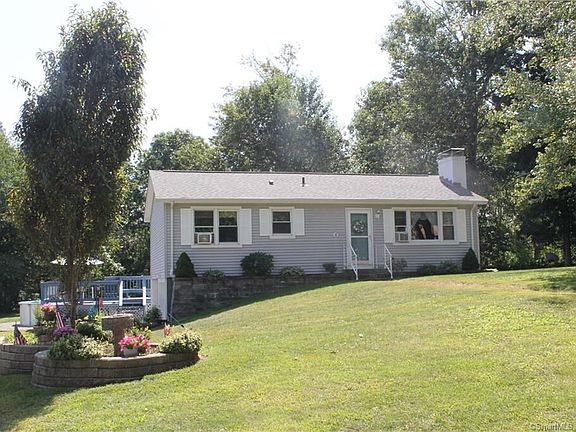 Oh the fun you will have here!! Located on the end of a cul-de-sac, this wonderful embankment Ranch boasts a two tier deck, sparkling above ground pool, fantastic 27 x 18 patio with built in fire pit, lovely 3 season sun room, and a beautiful level lot with wooded privacy. Inside features a spacious living room with fireplace, eat-in kitchen, two full baths, partially finished walk-out basement, one car garage and move-in condition. If you hesitate, it wont wait!