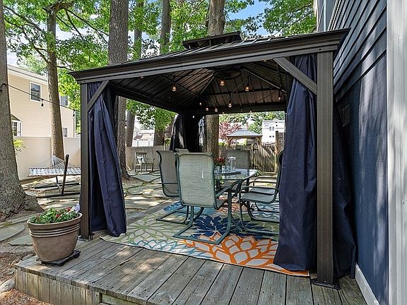 - Exterior features: Porch - Enclosed, Deck - Wood, Patio, Rain Gutters, Storage, Gazebo