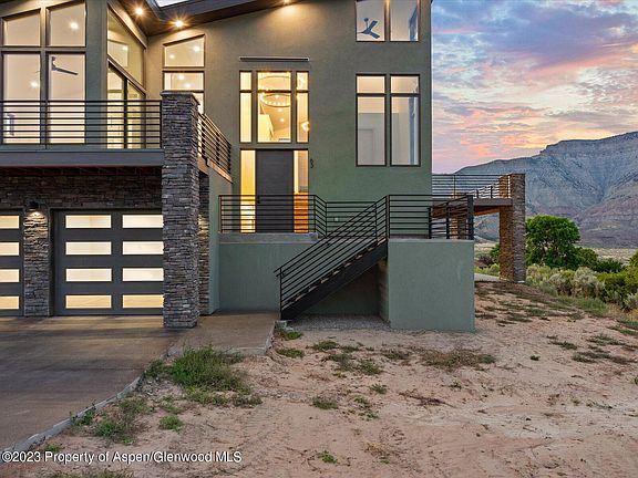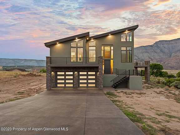 Modern Living on the Greens! This stunning modern contemporary home is situated on the 16th hole of the Battlement Mesa Golf Course. The main level offers a luxury primary own suite with a double vanity, double rain shower heads and a free-standing soaker tub. With a large open concept kitchen, living & dining extending onto the extra-large deck it is ideal for entertaining. The lower level offers a second entertaining room with a double garage door that leads to a large, covered patio with a full wet bar, two bedrooms and two bathrooms. Looking for luxury? This is IT!