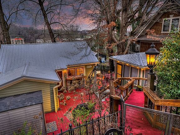 If you're looking for a unique downtown investment property - this is it! Cottage style with 1 bed/1 bath, large walk-in closet/laundry room and separate all-purpose sun room. This cottage has quaint outdoor space with a choice of decks for relaxing by the fire, napping, or entertaining at the built-in indoor/outdoor kitchen bar. The property has a "secret garden" feel with all of the flora, fauna surrounding the multiple decks. Located one block off Main Street for easy access to shops, restaurants, breweries, and healthy food choices. The original stone steps lead down through the garden, past mature trees and bubbling pond allowing foot traffic access to everything, so no nead to hop in the car. This is one of a very limited number of nightly rental property opportunities in the city of Blue Ridge as airbnb locations are limited by zoning. Property is sold as is, furnished, turn key and ready to go!