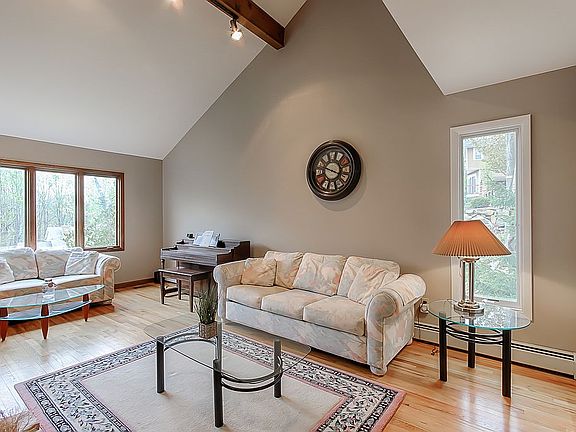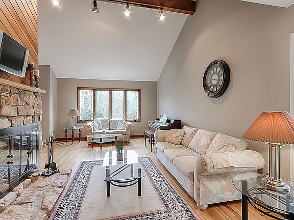 APPROX 2600 SQ FT! HUGE GREAT ROOM CATH CEILINGS & FD TO HUGE DECK.HDWD FLRS THRU 1ST FLR.GREAT SIZE ROOMS.LR HAS STONE FP , LEADS TO LARGE DINING ROOM W/SLIDERS TO DECK. LARGE WINDOWS WITH TONS OF SUNLIGHT ALLOW YOU TO ENJOY THE NATURAL LANDSCAPE AND PRIVACY.MASTER WITH CATHEDRAL CEIL, LUXURIOUS MB HAS SKY LT. MARBLE FLANKED JACUZZI.1ST FLR 4th BEDROOM/OFFICE. NEWER 3 BEDROOM SEPTIC, DRIVEWAY & STONE RETAINER WALL, FURNACE AND HWH. PRIVATE WOODED ACRE. GREAT COMMUTER LOCALE.