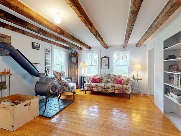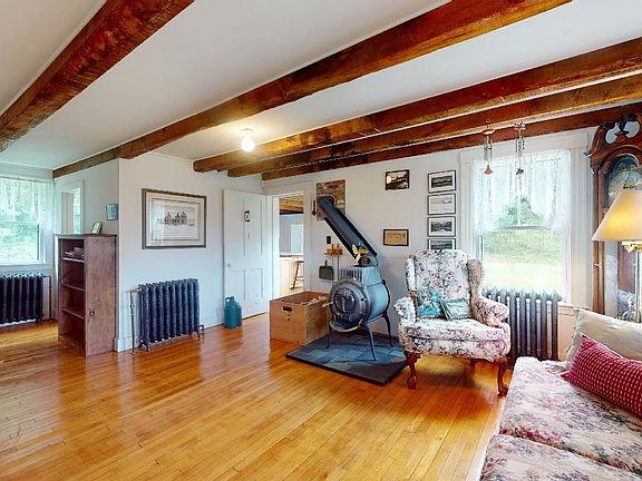 World class fly fisherman’s heaven! Follow your drive as it winds up to the classic farmhouse sitting high on the hill looking out over the valley and surrounding hills. This special property with over 1000 feet of river frontage has been a Fly-Fishing family retreat for many decades. A short distance just past the national trust Moxley covered bridge built in 1885 in picturesque Chelsea. The farmhouse was moved in the 1980s from the White River plains to up to its hill side perch with long panoramic mountain valley views. The lovingly restored classic cape farmhouse has 3 bedrooms and a bath on the 2nd floor. On the first floor you will find another bedroom, bath and office. The kitchen has been updated with a large island. There is a sunny dining area and living room with a cozy wood stove. Full unfinished concrete basement for storage and utilities. Enjoy the storage and convenience of the Attached garage/shed space and finished 2nd floor storage. Down by the river there are 2 barns, one with water, for boat, truck, or outdoor equipment plus electricity for workshop space. This property is a nature enthusiast’s dream! There are 74+ acres for fishing, x-country skiing, snowshoeing, biking and hiking. This is a once in a lifetime property to own for many generations!