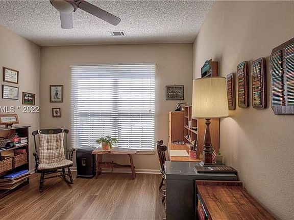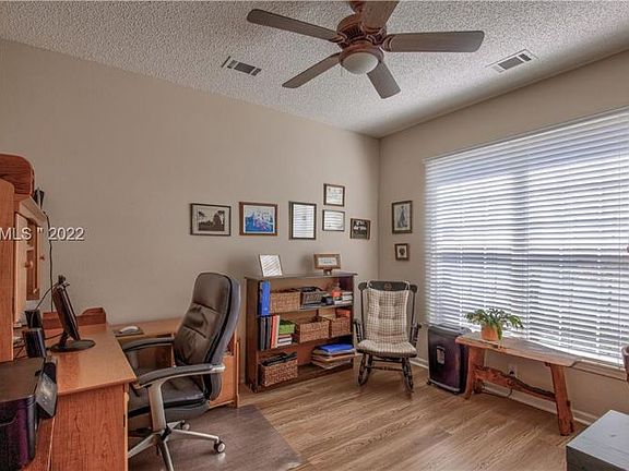 Ideal cul-de-sac location for this spacious Chestnut floor plan. Three bedrooms, plus a den, plus a formal dining room, what a large home! Inviting open floor plan w Great Room and dining area w sliders to screen porch; kitchen w Corian breakfast bar, pantry; Laundry room; Den office adjacent to entry foyer. The master suite has a bay window, large walk-in closet, shower, soaking tub, two sink vanity, clerestory windows. Two guest bedrooms w adjoining full bath. Extended 2 car garage w pull downstairs for overhead storage. Near Hidden Cypress Clubhouse and Sun City Hilton Head amenity parks - softball, pickleball, dog park, woodworking shop, etc.
