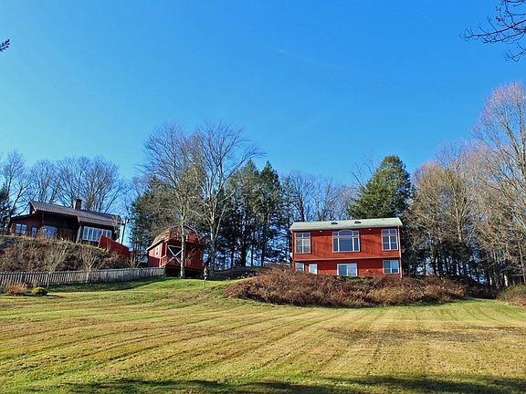 This extraordinary property is set on 19 picturesque acres of open and wooded land with breathtaking views to enjoy from the many large south and east-facing windows consists of 3 buildings, an inground pool that overlooks the view, a 182-panel solar array, backup generator, 2 hot tubs, and a little cabin. The main house offers an open living area, dual fireplace, wood stove in the sunroom with access to a spacious deck, large bedrooms with attached baths, and a finished room and bathroom on the lower walkout level. The 43' x 33' Studio is magnificent with massive windows from floor to cathedral ceiling calling in the view. There are 3 bedrooms and 2-1/2 baths on the lower level. The "Tree House" has a bedroom, bath, and a slider to the balcony/deck on each level facing the view and the 1-room cabin tucked in the woods right below. Located on a lovely, easily-accessible country road 20 minutes to Greenfield, MA, and Brattleboro, VT for shopping and many outdoor recreational opportunity