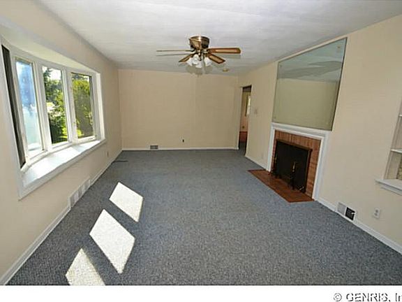 Step into this light and bright ranch in a prime location in Greece! This super clean, mechanically updated home offers a freshly painted interior, large fireplace liv rm, vinyl windows, vinyl siding, new tear off architectural roof, central air & a huge 3 car garage! Enjoy the bonus patio area in the fully fenced yard,backyard w/a shed on .78 acres