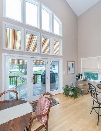 Custom home on a beautiful, level, lakefront lot in Henderson Cove on Lk Hopatcong. Upon entering you'll notice the abundance of windows and views of the lake. The LR has a tray ceiling, HW floors, recessed lighting and sliding door. Step up into the DR and find French doors to the deck w retractable awning and the updated kitchen with SS appliances. A bedroom, den, full bath, pwd rm, and laundry closet complete the main floor. Upstairs you'll love the open and airy loft for sitting area or office. Great master suite w newly renovated master bath incl heated floors and oversized stall shower. Bedroom has high ceiling. Downstairs w an unfinished basement and crawl space. Attached 1 car garage and carport. Yard has shed w electric and gazebo plus a dock for boat parking. Jet ski dock and outdoor shower, too!