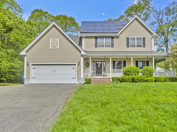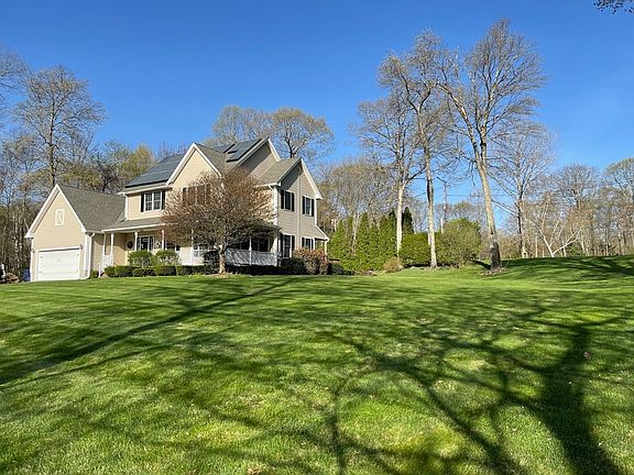 This stunning colonial-style home in the desirable Turkey Hill Estate is full of charm and thoughtful design. Set on a generous, lushly landscaped lot, it features a classic wrap-around farmer’s porch with elegant brick accents that add timeless character. Inside, 9-foot ceilings create an open, airy atmosphere, complemented by rich oak-toned hardwood floors. The flexible front room can serve as a formal living or dining space to suit your lifestyle. The kitchen offers a cozy dining area and ample cabinetry. A standout feature is the spacious living room with a large wood-burning fireplace—perfect for cozy New England evenings. The mudroom includes a laundry area, helping keep the rest of the home spotless. Upstairs, you'll find four well-sized bedrooms, including a private primary suite. The finished basement offers two versatile rooms plus a cedar closet. Ideally located, this home is perfect for commuters heading to UMASS, Westover, or the greater Springfield area.