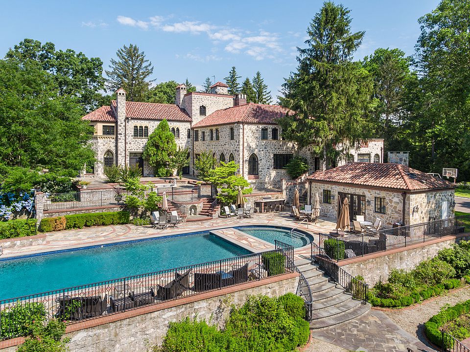 Magnificent Estate Stone Colonial, situated on 2.71 acres in the heart of Sterling Ridge. Rosario Candela, noted architect of many New York City's most exclusive residential buildings, designed and built this Westchester County Estate, as his own residence in the 1930's and was seven years in the making. House has been totally renovated. Home theatre, wine cellar, large playroom, state of the art kitchen with breakfast room, adjacent family room, formal living room with fireplace, formal dining room, fireplace, intimate study, fireplace, back stairs, elevator. Detailed plaster beams and moldings throughout. 70 foot Pool, pool house with kitchen, fpl. sitting area, 2 baths. Outdoor kitchen. Specimen trees and fruit trees. Ludowici roof, 11 zone CAC, 15 zone hydro air heating system, elevator. Owner would consider selling furnished.