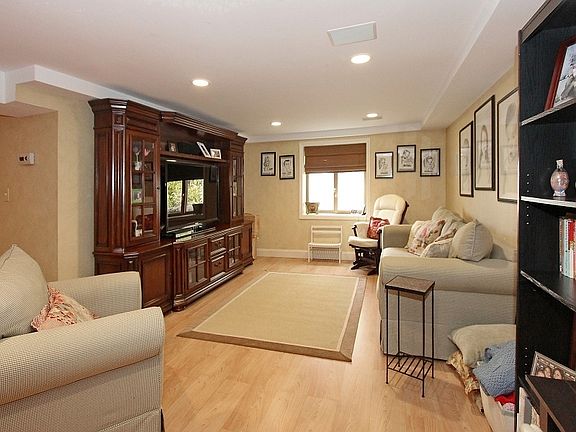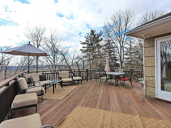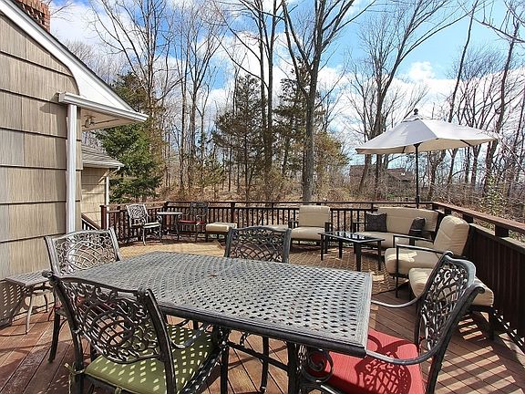 This gorgeous ranch boasts a large kitchen adjacent to the family room & dining room which both feature radiant heated floors. There is also a butlers pantry, wet bar and great flow for entertaining.The recently renovated basement offers an office, recreation area, TV area, laundry and ample storage. Additionally, this home is great for outdoor entertaining with a Mohogany deck that offers breathtaking views that are most spectacular at sunrise and sunset and also overlooks the pristine lot and a patio for lower level entertaining.
