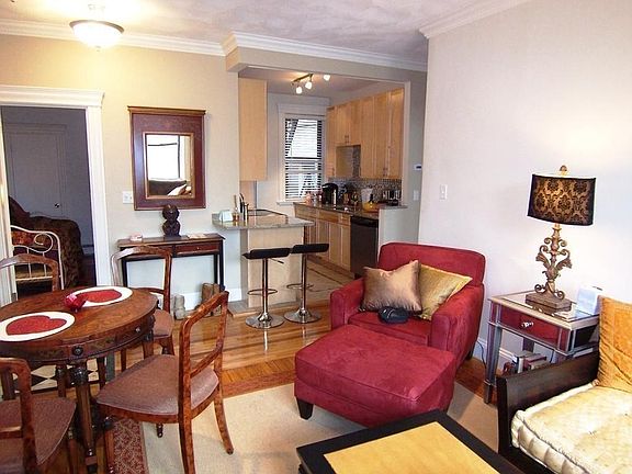 ABSOLUTELY AMAZING condo-quality 2 bedroom with 5 large sunny private windows facing over the Back Bay Fens with sweeping views of the park, Prudential & Four Seasons Towers. 9 foot ceilings with custom dentil crown molding, hardwood floors, custom ceramic tile kitchen with full-sized stainless steel appliances, granite counters, custom cabinets and cozy breakfast bar. Fully-renovated ceramic tile bath. Hand painted decorative floors! You don't see a property like this often, with this level of quality and desirability, available for rent. Common laundry in basement. Tenant pays gas heat. First one in will get this one. Available Sept 1. Non smokers, no pets, responsible neighbors need only apply. if you're seeking something special this is the one!