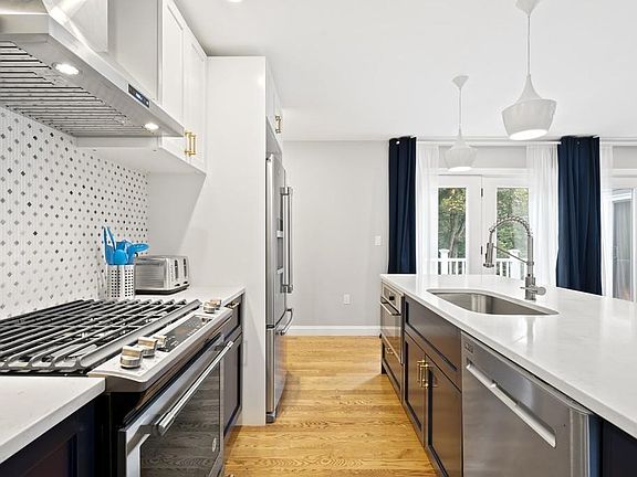 AVAILABLE NOW! Be the first time live in this gut renovated historic Williams Mansion in Moreland Street historic district. Spacious, upper-level duplex with 3 bedrooms & 3 baths offers 2 master suites and multiple decks across 1,800+ sq ft. Main level open floor kitchen/dining area comes with luxury finishes including two-tone cabinets, gold accents, Maytag stainless steel appliances, kitchen island, and stone counters. Floor-to-ceiling windows create a wall of glass that brings in plenty of natural light and sliding door leads to a private deck. Upper level has two spacious master bedrooms, each with an en suite bath and California walk-in closet. Also on this level is a third bedroom that could serve as a nursery or office. Private roof deck offers city skyline views and greenery in every direction. In-unit laundry, 3-inch oak hardwood flooring and High-efficiency HVAC system & spray-foam insulation. Two parking spaces & large basement storage space include. Pets considered.