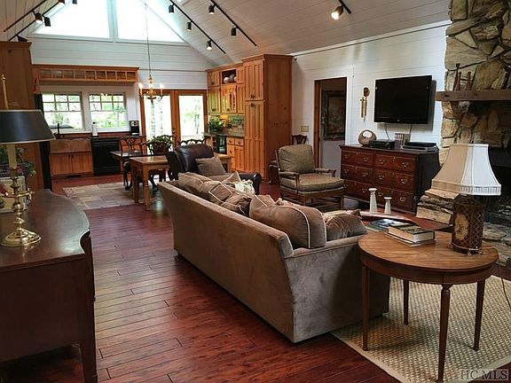 Warm three bedroom two bath home with a "mountain log cabin" feel located on a large 0.61 acre parcel in a quiet wooded area of Trillium Village. The extensive use of pine throughout this all one level family retreat is complemented by a large covered porch which includes a great stone wood burning fireplace with gas starter. Family and friends will also covet the open living design of this floorplan with its own stone fireplace and an adjacent dining area. Surrounded by lush native landscaping. The house is about equidistant between the Trillium Clubhouse area and The Landings lakeside restaurant area. An OPTIONAL Club Membership would include generational privileges and all of the unmatched Trillium Links & Lake Club family friendly amenities, including deeded lake access.