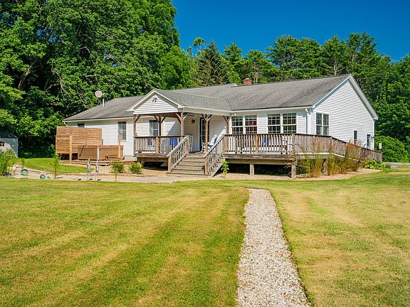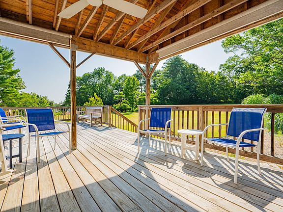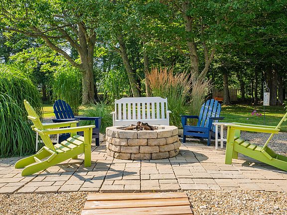 The kitchen has 2 large pantries and opens to a nice size dining area that overlooks the wonderful yard. There also is a large partially covered porch and deck. There are 3 bedrooms, the primary has its own newer bathroom. You will enjoy snuggling up the custom gas firepit in the backyard, perfect for outdoor entertaining. There is a oversized 2 car garage as well as a storage shed. Large unfinished basement and updated heating system plus 2 heat pumps. Home has been used as a 3 bedroom, the HHE-200 from 1987 shows a 2-bedroom septic.