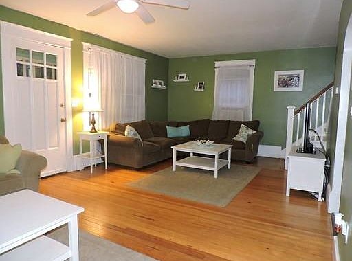 Don't miss this opportunity! Perfect starter home located on a dead end street! This 2 bedroom / 1 bath cape is surprisingly spacious - featuring a large living room with hardwood floors and fireplace, dining room with hardwood floors, completely remodeled kitchen with stainless appliances, remodeled full bath, first floor laundry room, 2 charming enclosed porches, and 2 spacious bedrooms each with walk-in closets. Newer roof and a nice private yard with storage shed and detached garage. Cute as a button and move-in ready! Schedule your appointment today before it's gone.