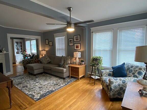 Little City Bungalow charm with two first floor bedrooms and full bath. Open sight lines from living room with gas fireplace to dining room and galley kitchen. Second floor has studio space, bedroom and half bath. Basement has walk out to backyard and two car garage. Roof of garage either will be repaired or closing cost credit. Full bath gutted to studs and renovated with new everything. Kitchen has new appliances, sink, faucet and Deer Isle granite, the latter of which is iconic and quintessentially Maine made. Attached deck adds grilling and chill out space. One block from the park and tennis courts. See improvements page for full list of all updates. Please understand that the owner is in the process of moving and online pictures will not reflect the process.