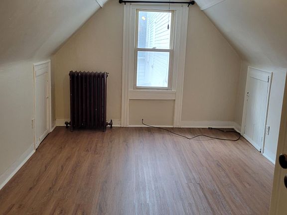 Smaller sized one bedroom apartment. New flooring. Freshly painted. New kitchen countertop. New bathroom vanity. First floor unit with an upstairs bedroom. New refrigerator and apartment size stove included. Heat is included. Parking is on street. One cat considered. Owner provides heat, water, garbage. One year lease. If interested, please submit application and after review, showings will be scheduled. Credit score and references considered in application. Income of at least three times the monthly rent required.