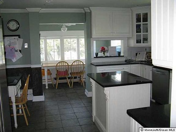 Partially furnished. NOT in FEMA flood zone-4 bdrm seashore colonial with porch. New kitchen with granite counters, stainless steel appliances, 6 burner Bertazzoni stove, butler's pantry with wine cooler, 2nd dishwasher, 2 new full baths, hardwood floors, stackable washer/dryer on 2nd floor and full washer/dryer in basement, custom woodwork, gas fireplace, surround sound in/out, new landscape, exterior lights, Belgium block curbing, new large deck with retract awning, sprinkler system. New roof, windows, storm doors, new HVAC, new hot water heater, walkup attic, full basement with Bilco doors, security system, 2-car garage. Easy access to GSP. No smokers.