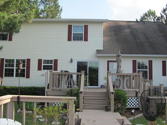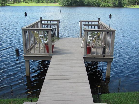 OWN YOUR OWN ISLAND!Gorgeous two story vinyl home overlooking the lake and beautifully landscaped yard. 4 bedrooms, 2.5 baths nestled between the trees on your OWN private island.Lower level: Open family and formal dining room, fully equipped kitchen with stainless steel appliances & new DW, (new sliding doors leading to deck), master bedroom has a 2nd door leading to the deck & inviting covered spa, master bath (garden tub and separate shower), bath, laundry room, & laminate wood floors. Great utilization of space for storage in all areas.Upper level: 3 bedrooms, 1 bath, great aerial view of the family room from the 2nd floor, attic storage, berber carpet.Fantastic view of the lake from any room in the home!(2) units - Central Heat / Air (upper unit is new). Oversized 2 car garage with electric door opener, sprinkler system, paved drive, fishing dock, detached building for storage, located in the Lake Owl head area on Quail Run.