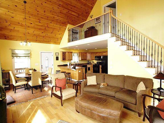 Custom built hillside chalet on 5 plus acres with your own spring fed pond and entertainment pavilion! Big beautiful living room with cathedral ceiling open stairway gas fireplace & lots of glass. Gorgeous kitchen w/maple cabinetry, spacious bed rooms, wrap around view deck, walk out basement finished into mother in law apartment, central air & vac, hard wood and tile flooring, finished two car garage with finished office and storage room in attic, views of surrounding farm land and Vermont's Green Mountains. Mins to Vermont, Lake George and Saratoga!