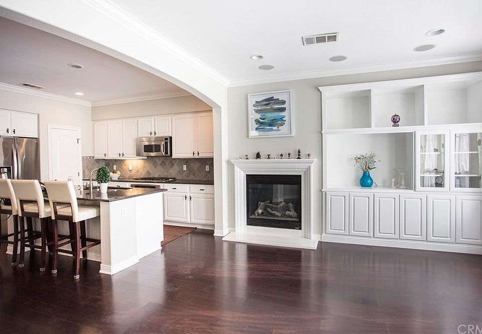 Gorgeous and immaculate, turn key DETACHED Cachette Plan 3 (only one on the market), with open floor plan, 4 bedrooms and 3 bathrooms with no neighbors in front or behind. Rich hardwood floors downstairs and recently upgraded carpet upstairs, crown molding throughout, plantation shutters, custom built-ins including buffet niche and garage cabinets and desirable first floor bedroom and bathroom for live-in parents or guests. The spacious gourmet kitchen features large center island with upgraded granite countertops, full stone backsplash, custom hardware, stainless steel appliances and a large pantry. Kitchen opens to Great Room with cozy fireplace, built-in entertainment niche and surround sound speakers. Dining room faces French sliding door leading to fountain and landscaped yard perfect for entertaining. Rare additional side yard to house trash cans and other outdoor storage items. Three bedrooms upstairs including the large master suite, which features an extended retreat that can be used as an office or sitting area with custom French doors. The master closet is a dream walk-in with custom shelving and shoe display. This home has many more features you must see!