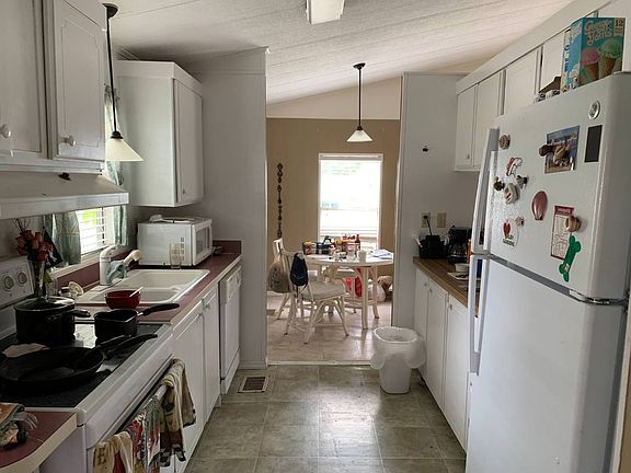 This is a mobile home for sale in a 55+, pet friendly community on a rented/leased lot with access to the Manatee River. This 2BR/2BA mobile home is ready for year round or seasonal living on the Manatee River! It is located on a desirable waterfront lot at the end of the street at the back of the community for privacy. A little TLC will go a long way to make this one your own! It comes partially furnished. The galley kitchen has 12" vinyl flooring, custom cabinets and ample storage. There are hookups for the washer/dryer (included in the sale) conveniently located inside at one end of the kitchen. The formal dining room has 12" vinyl flooring, custom paint and a built in wall hutch. The adjoining living room has 12" vinyl flooring, panel walls, a ceiling fan and cathedral ceilings. Adjacent to the living room is the 14 x 22 enclosed lanai with a window A/C with sweeping views of the Manatee River. There is an exit from the lanai to the L-shaped wrap around deck for waterfront living and entertaining. The master bedroom has carpet, panel walls and a ceiling fan. The guest bedroom has French Doors, carpet, panel walls and a ceiling fan. There are two bathrooms in the hall. The both have vinyl flooring, a single sink vanity, and a walk in shower. The carport can park 2 cars tandem style. There is a shed with double doors for extra storage. The lot rent is $647 and includes water, sewer, trash, lawn cutting, edging, blowing, a clubhouse, access to the Manatee River and a calendar of activities. Pelican Pier Mobile Home Park is a pet friendly 55+ community on the Manatee River. It is located just off I-75 near the Ellenton Outlets, shopping and other services. Florida MH Sales, LLC cannot guarantee or warrant the accuracy of this information, measurements or condition of any property. Measurements are approximate. Lot rent is subject to change.