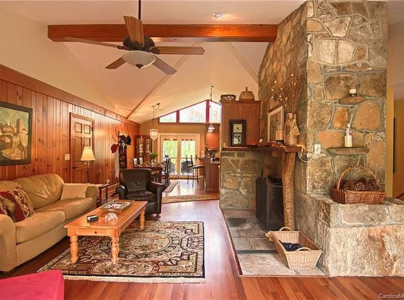 Custom, Arts & Crafts Home Nestled in the Woods. Completely rebuilt in 2008! You will love the open floor plan w/vaulted ceilings & lots of windows for natural lighting. Attention to details throughout: Solid Cherry Brazilian HW floors, Knotty Pine Walls GR/DR. A handsome stone FP that is the heart of this home. Custom Kitchen w/ Breakfast Bar, Pantry, Built-Ins, an abundance of lower drawers, cabinets & counter tops. Dining Area has plenty of seating w/ gorgeous views of the back yard. Master Suite w/ Vaulted Ceilings, Natural Light, Views of the colorful Azaleas & private MBA w/ a Lg Walk in Closet, Step in Tile Shower, Water Closet, Custom Double Vanity & Dressing Area. LL has an office space, utility room & lots of UF storage. Home is a Certified Wildlife Habitat surround by a wide variety of shrubs & trees, recycling waterfall, greenhouse, raised beds, enclosed potting shed, above ground irrigation & more! Property borders Wetland. Walking distance to Historic Flat Rock!