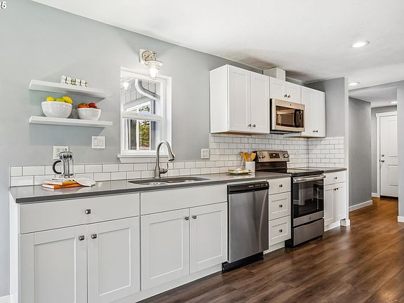 Move-ready, remodeled single-level home in St. Helens! This gem offers a spacious floorplan showcasing an open concept living anddining area, perfect for entertaining, 2 bedrooms, and 2 baths including a primary with walk-in closet and ensuite bath, laundry closet with washer and dryer, and attached two car garage. Outside, the large, fully fenced yard is ideal for pets, gardening, or outdoor gatherings, the back deck provides the perfect spot for morning coffee or evening relaxation, and a convenient shed offers additional storage for all your outdoor essentials. Modern upgrades include energy-efficient tankless hot water and a mini-split heating and cooling system, ensuring year-round comfort while keeping utility costs in check. Fresh exterior paint, newer roof and flooring, updated and kitchen, and baths! Large driveway has room for RV/boat parking. Contemporary conveniences in a desirable St. Helens location!