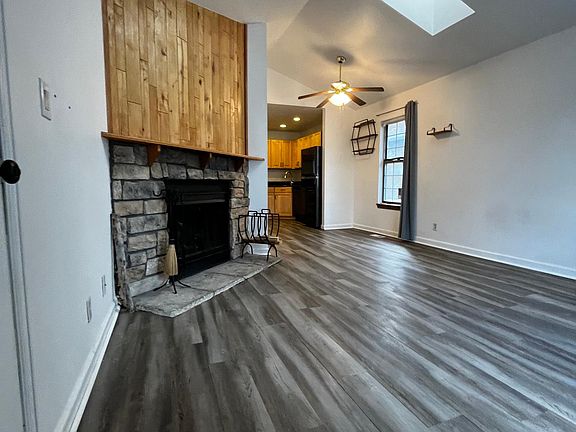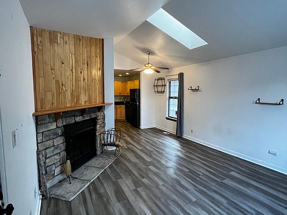 Rent this unfurnished penthouse suite built in 1982 has high vaulted ceilings with a skylight and lots of natural light. Fresh white paint with Sultana purple accent walls. New Water Heater and Central AC (Wi-Fi accessible) put in 2022, wood burning fireplace, granite countertops, Dishwasher vinyl flooring, private balcony with storage closet, large bedroom closet with built in shelving and appliances new within the last three years, (washer/dryer & refrigerator). Updated bathroom (plumbing included), deluxe vinyl flooring, and paint. Within walking distance to plenty of shops and a variety of restaurants. The light rail is a two-minute walk! This is an end unit on the second (top) level. Two parking passes included, one of them is an assigned space close to the unit. Mail on site, community gazebo, dogs and cats allowed as agreed upon during lease signing. Pets are $300 one time refundable deposit and additional $25 each/month and have to be approved. First month, last month and security deposit due upon signing. No smoking inside the property.