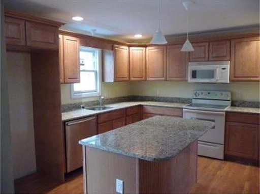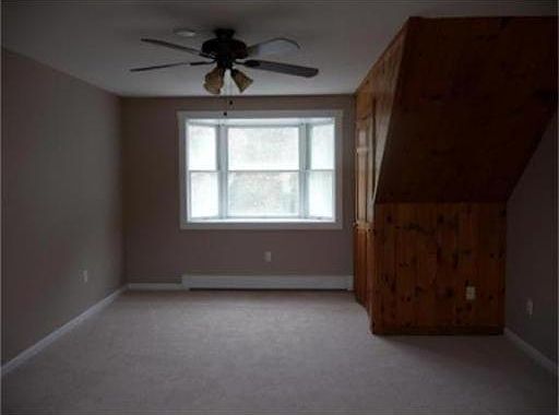 Very unique townhouse rental. Like new unit boast new oak cab. kitchen with granit counters, formal dining room with built in china closet, front to back fireplaced living room, large master bedroom, and 2nd bedroom with built in play house. This is a quaint 3 unit complex on 1.67 private acres that abuts Depot Trail bike path, and surrounded by acres of town owned land.