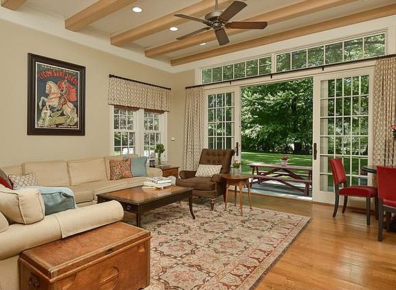Beautifully sited five bedroom, four full bathroom updated home has been tastefully expanded with the finest craftsmanship. The inviting front porch welcomes you and provides fabulous curb appeal. The expansive family room with 11 foot ceilings has large sliders to flagstone patio. Formal dining room and living room w/ fireplace make entertaining a pleasure and a spacious den offers another place to gather. Large, flat backyard w/ oversized patio is the ideal location for entertaining, relaxing and enjoying the outdoors. First floor master bedroom with en-suite bathroom and 2 closets. Custom laundry room and mudroom for your convenience. Full basement (CO in progress) with ample light makes for a fabulous gym and/or playroom space. A must see!