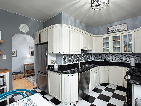 Welcome home to The Ariston at 63 Sherman Place, a treasured tree-lined street in Jersey City Heights surrounded by Victorian homes, and just minutes to Central Ave bakeries, shopping, Pershing Field Park and convenient access into NYC, Hoboken or Downtown Jersey City. This bright & expansive, 2Bed/1Bath southeast Corner unit beautifully blends old world charm with modern upgrades. This stately pre-war elevator building features intricate craftsmanship and details like parquet hardwood floors, large windows, high ceilings and original crown molding throughout. Enter the home and you are greeted by a gracious entry foyer that's perfect for artwork and clearly separates the large secluded master bedroom and brand new renovated bathroom from the oversized living room, second bedroom/den with french doors and windowed eat-in kitchen with an archway entry, stainless steel gas cooktop/stove, microwave, dishwasher, refrigerator and abundant cabinetry. A bright southeast corner exposure floods in natural light all day long, and a host of sizable walk-in closets offer ample storage for all of your belongings. Building amenities include on-site laundry facility, elevator and are professionally managed.