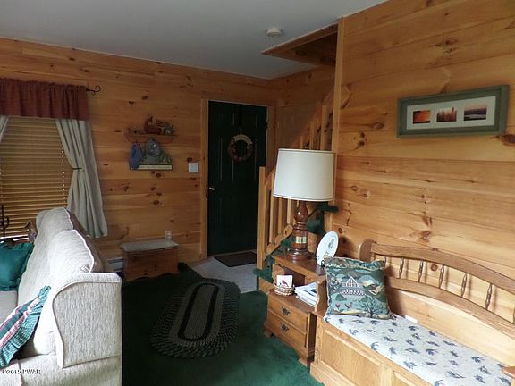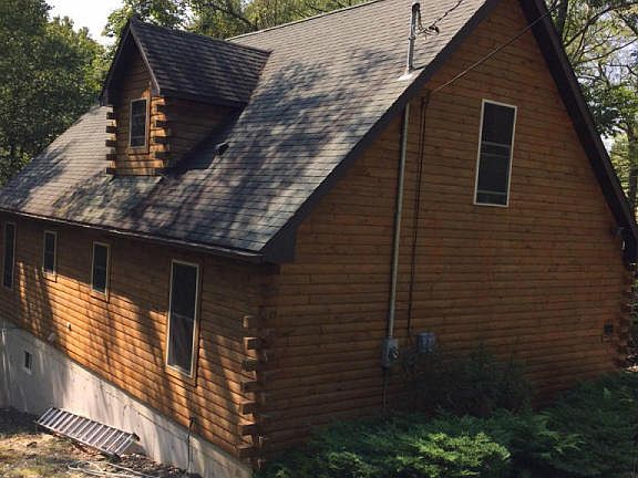 Let's go to the Mountains! Bring the kids, bring the dogs, and bring your friends! Have a vacation every week end in this gorgeous Log Home, furnished and turn key, with 3 bedrooms, 2 baths, full basement, and a large deck over looking the tree tops. Close to Historic Village of Hawley with many shops, gourmet dinning and just a short drive to private beach area on Lake Wallenpaupack. WASD
