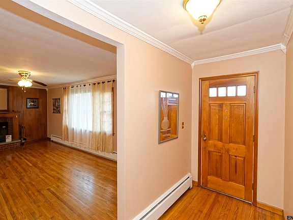 Situated on a level lot within walking distance to all local shopping sits this 1300+ sq ft LATHAM ranch w/ IG pool. HW flrs throughout. Updates include brand new roof last month, new kitchen, newer appliances, updated fully tiled bath, freshly painted, custom shed, H20 tank, & lots more. Hot water baseboard heat. North Colonie schools, low taxes, and super convenient location. Full dry basement could easily be finished and walks out to a great yard. 3 season breezeway leads to a large 1 car garage.
