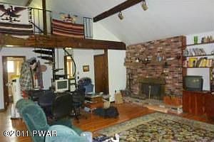 BEAVER LAKE ~ 12+ ACRE LAKE HOME ~ PRIVACY AND VIEWS ~ Inviting & private 2/3 bedroom hideaway nestled on picturesque 12+ acre parcel with easy access to private mountain lake. Features: kitchen w/ appliances, spacious living room with brick fireplace, separate dining area, large wrap around deck for entertaining, seasonal lake views and large barn.